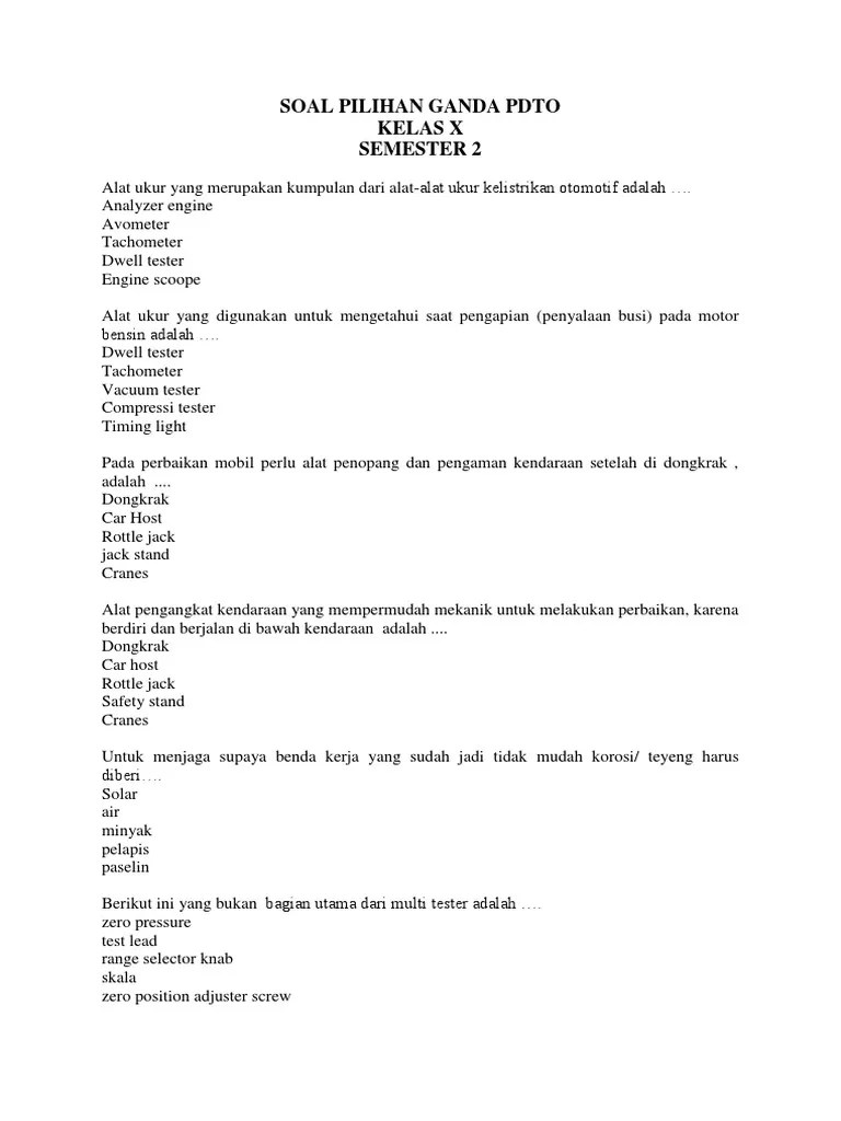 Soal Alat Ukur Otomotif Essay - Contoh Soal Hots Otomotif Lektur - Soal penggunaan alat ukur tkr dan tsm lengkap beserta kunci jawaban.
